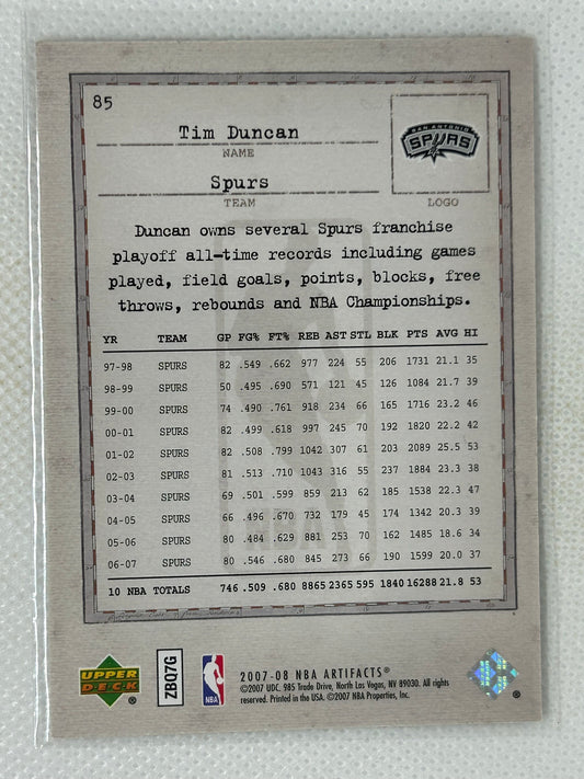 2007-08 Upperdeck Artifacts Tim Duncan #85 San Antonio Spurs