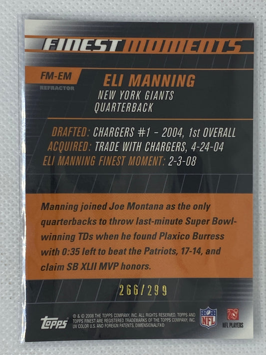 2008 Eli Manning Topps Finest Moments Blue Refractor FM-EM /299 New York Giants