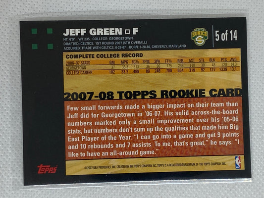 2007-2008 Topps Jeff Green RC Rookie Card White #5 of 14 Rare