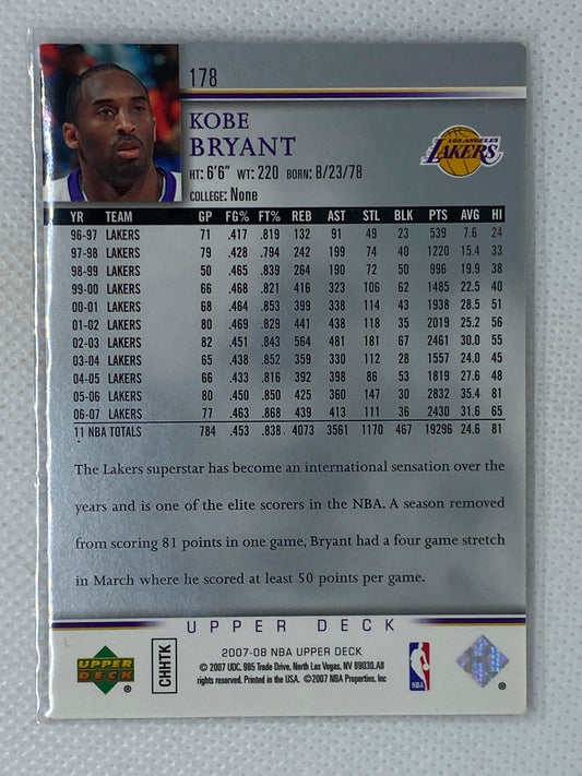 2007-08 Upper Deck Los Angeles Lakers Basketball Card #178 Kobe Bryant