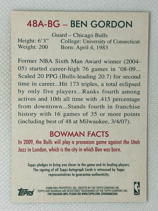 2009-10 Topps Bowman Ben Gordon Authentic Autograph 48A-BG Chicago Bulls