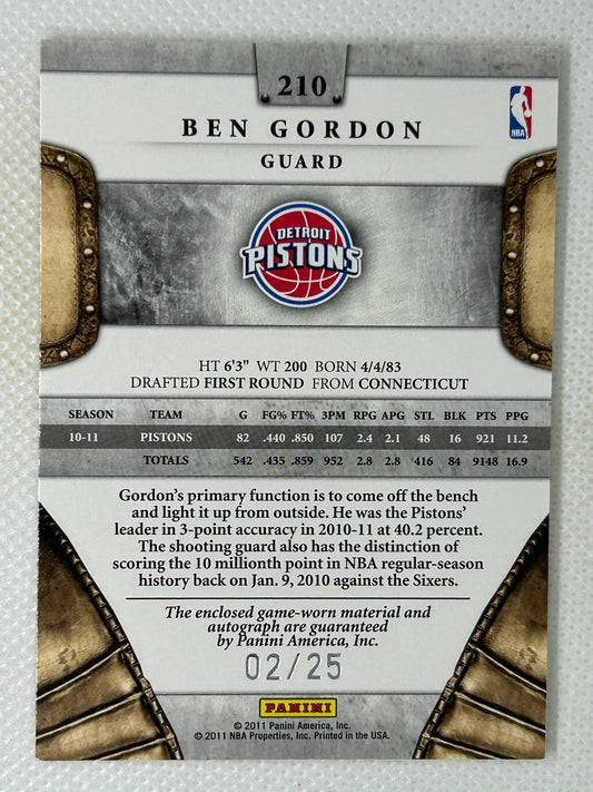 2011-12 Panini Crown Royale Silhouettes Relic Autograph #210 Ben Gordon /25 Detroit Pistons