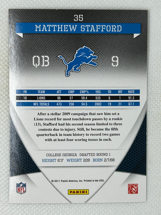 2011 Panini Donruss Elite #35 Matthew Stafford Detroit Lions