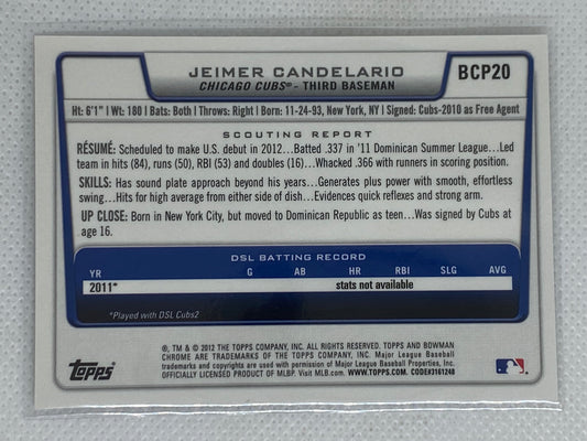 2012 Bowman Chrome 1st Bowman Rookie Autograph Jeimer Candelario #BCP20 Chicago Cubs