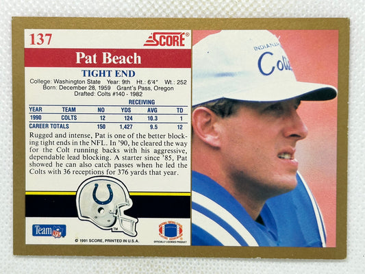 1991 Score Pat Beach #137 Indianapolis Colts Signed Card
