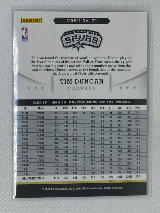 2012-13 NBA Hoops Tim Duncan #70 San Antonio Spurs HOF