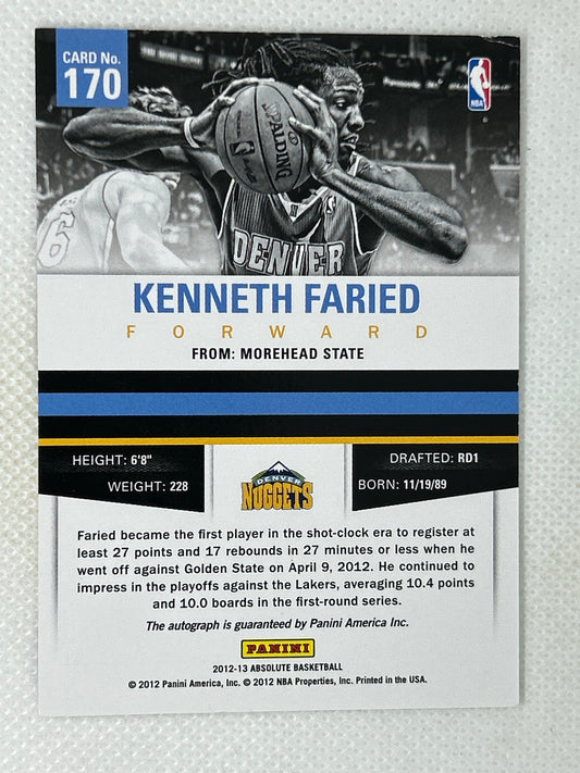 2012-13 Panini Absolute Kenneth Faried Rookie Autograph #170 /299 Denver Nuggets