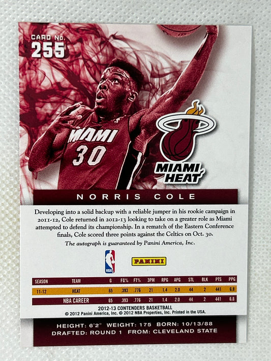 2012-13 Panini Contenders Rookie Autograph Norris Cole #255 Miami Heat