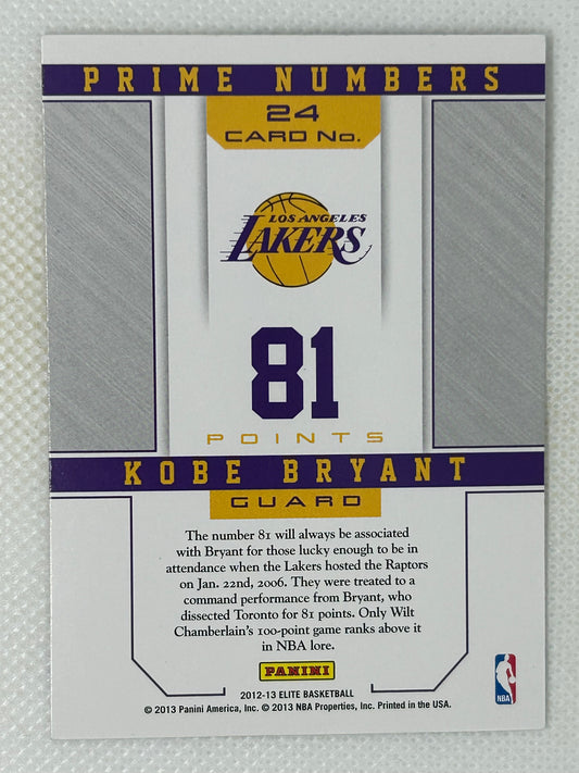 2012-13 Panini Elite Prime Numbers Kobe Bryant #24 Los Angeles Lakers