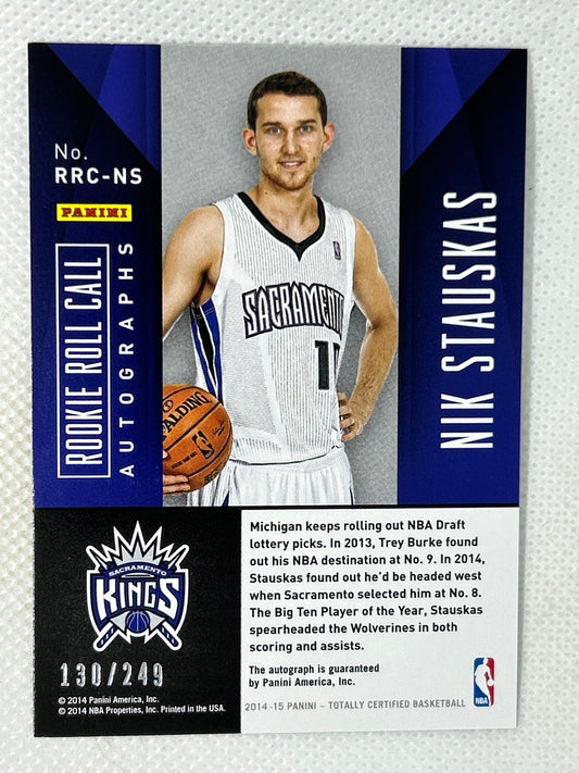 2014 Panini Totally Certified Rookie Roll Call Autograph /249 Nik Stauskas #RRC-NS Sacramento Kings