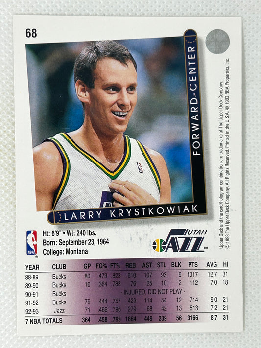1993-94 Upper Deck Larry Krystkowiak #68 Utah Jazz Signed Card