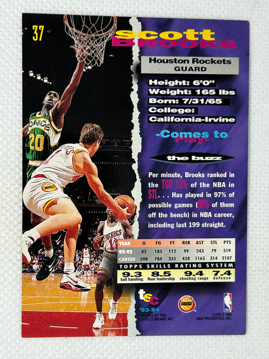 1993-94 Stadium Club #37 Scott Brooks Houston Rockets Signed Card