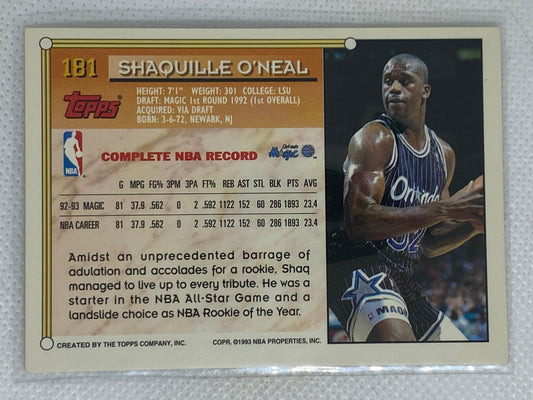 1993-94 Topps Shaquille O’Neal #181 2nd Year Shaq Basketball Card Orlando Magic