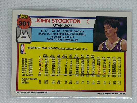 1993-94 TOPPS JOHN STOCKTON Utah Jazz Basketball #301