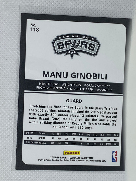 2015-16 Panini Complete #118 Manu Ginobili San Antonio Spurs HOF