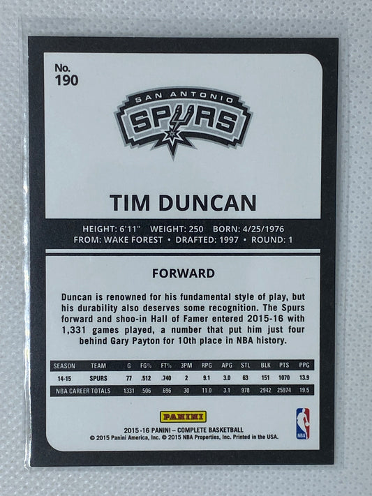 2015-16 Panini Complete - Tim Duncan #190 - San Antonio Spurs
