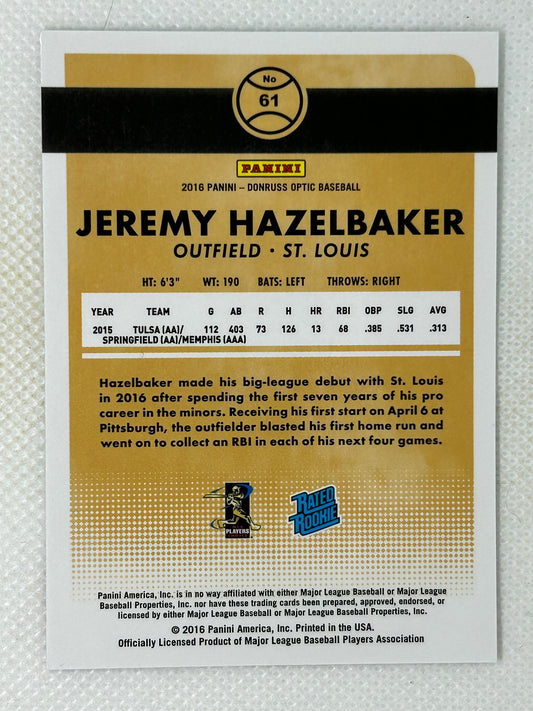 2016 Panini Donruss Optic Rated Rookie #61 Jeremy Hazelbaker St. Louis Cardinals Signed Card