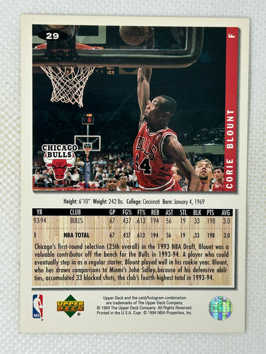 1994-95 Upper Deck Collector's Choice Basketball Corie Blount #29 Chicago Bulls Signed Card