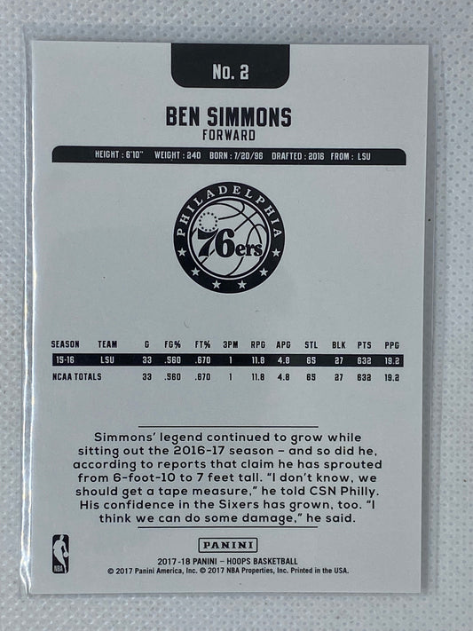 2017-18 Panini NBA Hoops Ben Simmons #2 Philadelphia 76ers NBA Card 🔥