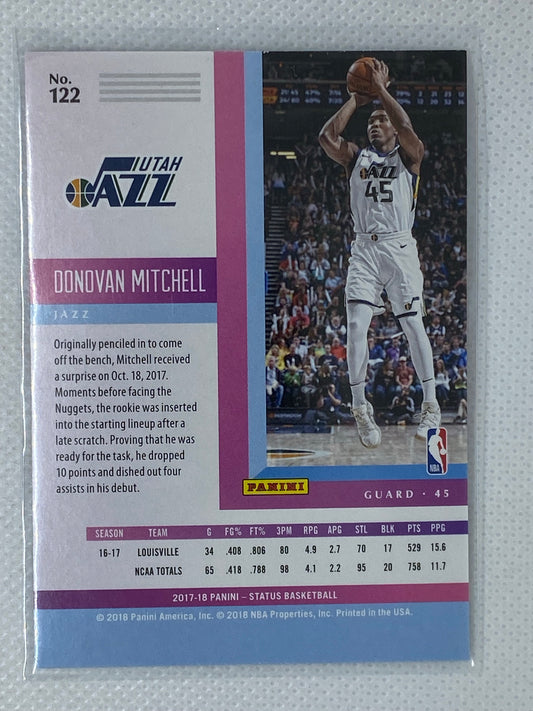 2017-18 Panini Status Donovan Mitchell # 122 Rookie Card Player Utah Jazz