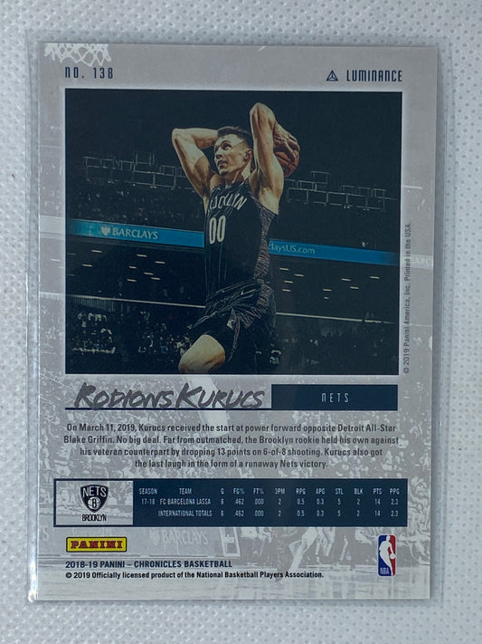 2018-19 Panini Chronicles Luminance Base #138 Rodions Kurucs