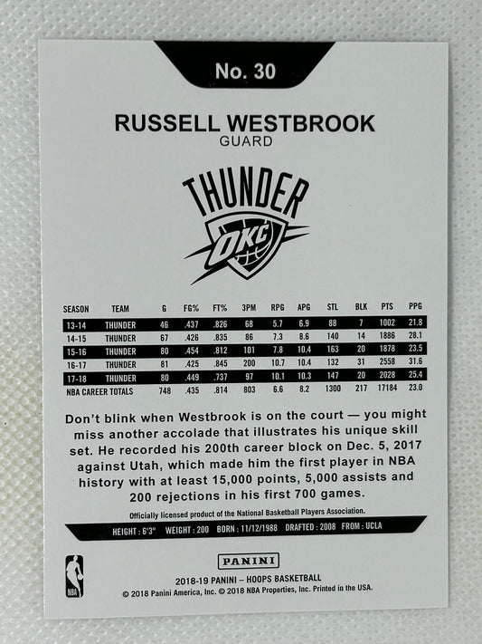 2018-19 Panini NBA Hoops Russell Westbrook #30 Oklahoma City Thunder