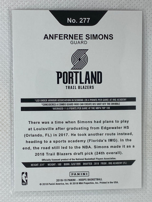 2018-19 Panini Hoops Rookie Anfernee Simons #277 Portland Trailblazers
