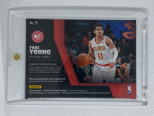 2018-19 Panini Player of the Day Trae Young Rookie Jersey 2 Color Relic Patch RC