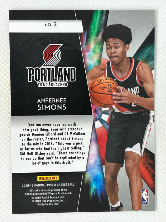 2018-19 Panini Prizm Freshman Phenoms #2 Rookie Card Anfernee Simons Portland Trailblazers