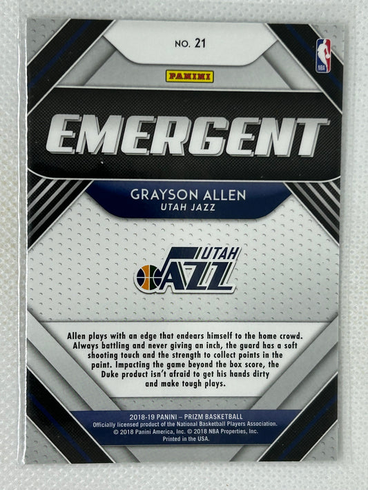 2018-19 Panini Prizm Emergent Silver Grayson Allen Rookie #21 Utah Jazz