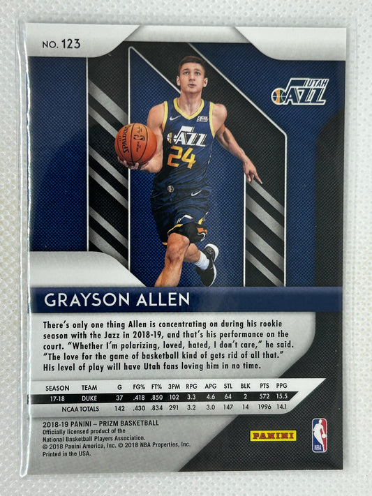 2018-19 Panini Prizm Grayson Allen Rookie #123 Utah Jazz