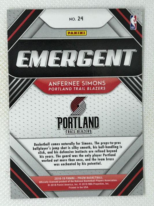 2018-19 Panini Prizm Emergent #24 Rookie Card Anfernee Simons Portland Trailblazers