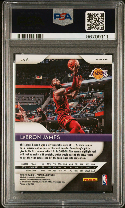2018-19 Panini Prizm Green Lebron James #6 PSA 8 Los Angeles Lakers