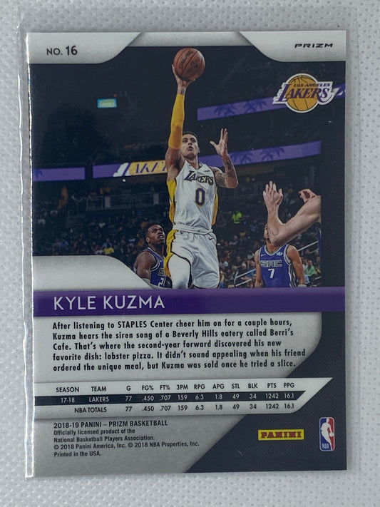 2018-19 Panini Prizm Kyle Kuzma Pink Cracked Ice Prizm Card #16 LA Lakers