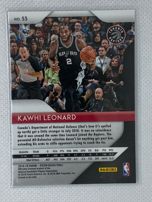2018-19 Panini Prizm Kawhi Leonard #53 Base Toronto Raptors