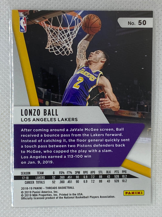 2018-19 Panini Threads Base Lonzo Ball #50 Los Angeles Lakers