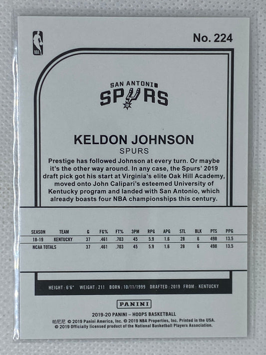 2019-20 Hoops Rookie RC #224 Keldon Johnson San Antonio Spurs