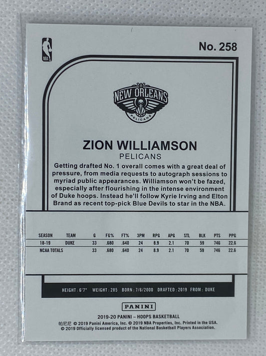 2019-20 NBA Hoops Zion Williamson Winter Parallel Rookie Card RC #258