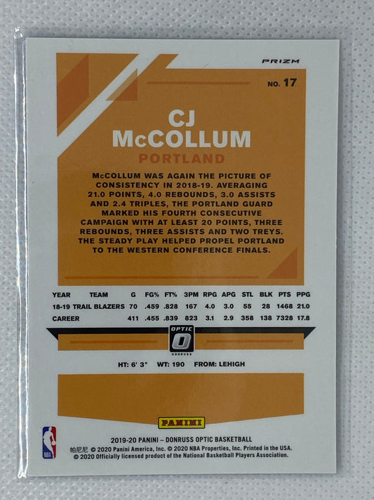 2019-20 Optic Blue Velocity Prizm #17 CJ McCollum Portland Trail Blazers