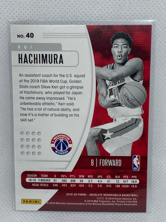 2019-20 Panini Absolute Memorabilia Rui Hachimura Wizards Rookie RC #40