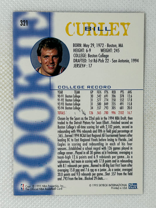 1994-95 Skybox Bill Curley #321 Rookie Card Detroit Pistons Signed Card