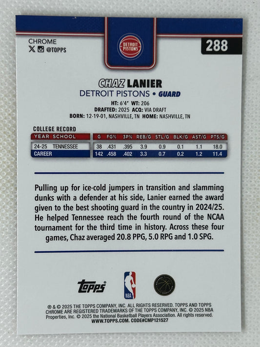 2025-26 Topps Chrome Chaz Lanier Orange Basketball Border Refractor #288 Detroit Pistons SP