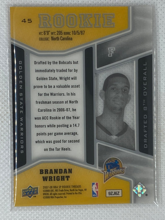 2007-08 SP Rookie Threads /199 Brandan Wright #45 Rookie RC