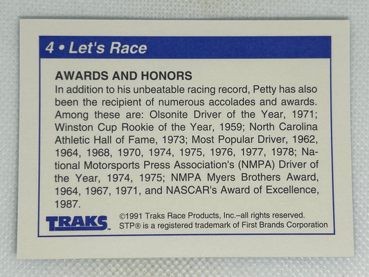 1991 Traks Richard Petty #4 Let's Race Signed Card