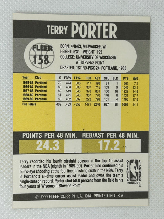 1990-91 Fleer Terry Porter #158 Portland Trail Blazers Signed Card