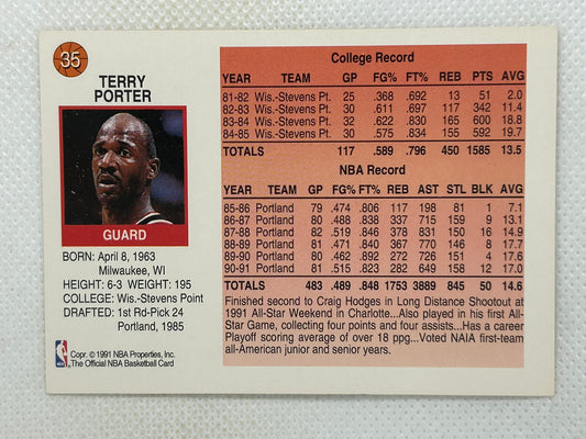 1991-92 NBA Hoops Terry Porter #35 Portland Trail Blazers Signed Card