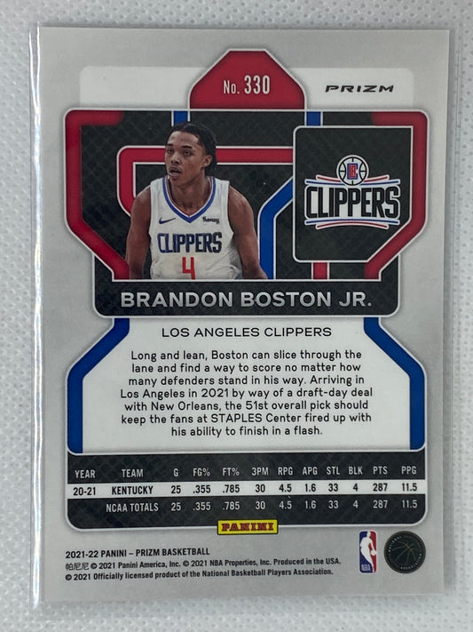 2021-22 Panini Prizm Basketball #330 Brandon Boston Jr. Silver Prizm Los Angeles Clippers
