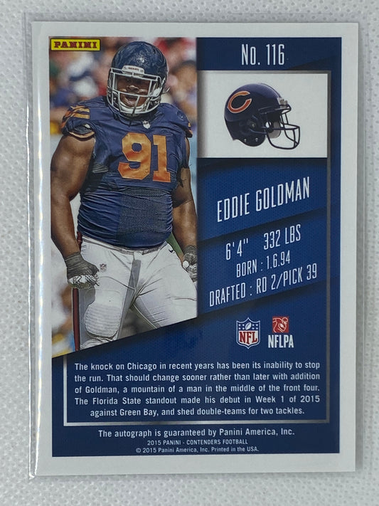 2015 Panini Contenders Rookie Ticket Silver Holo Eddie Goldman #116 Rookie Auto /99 Chicago Bears