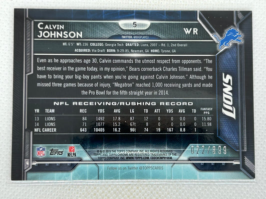 2015 Topps Chrome Pink Holo #5 Calvin Johnson /399 Detroit Lions