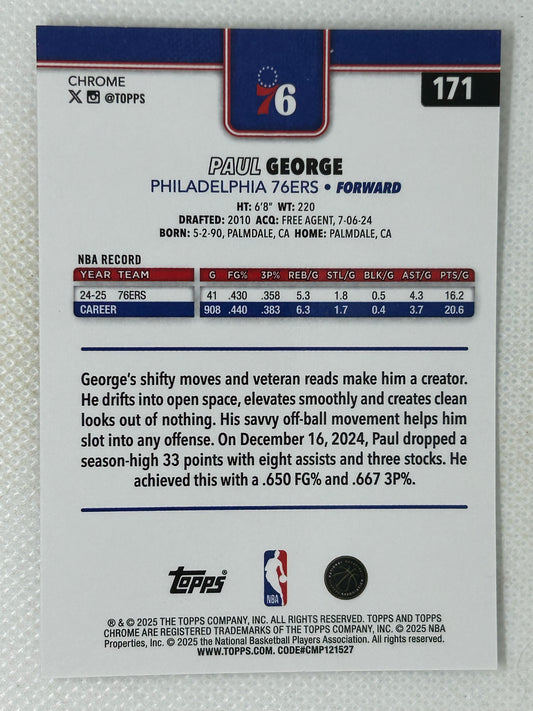 2025-26 Topps Chrome #171 Paul George Silver Refractor Philadelphia 76ers